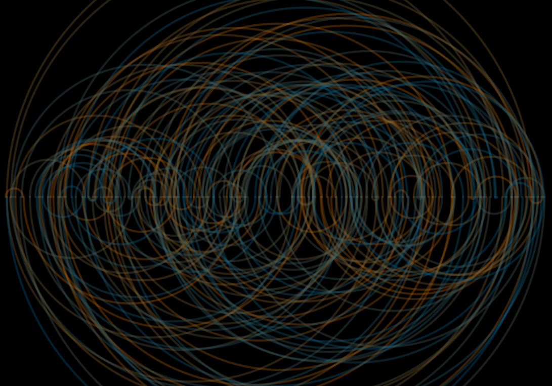 That’s a start, but it’s very cluttered. Let’s draw every other semi-circle below that number-line.