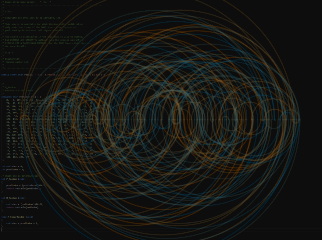 So I downloaded the Doom source, and opened the PRNG code in Visual Studio. Zoomed all the way out, grabbed a screen shot, and pasted it in Gimp. That’s a start but now what?